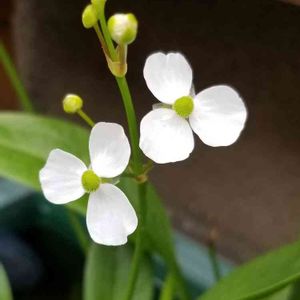 ナガバオモダカ (長葉面高) 別名 ジャイアント・サジタリア 花は昼頃に開き 夕方には閉じる一日花。 雌雄同株の雌雄異花で日本にあるものは雌花だけなので 種子繁殖はしませんが地下茎(ランナー)で栄養繁殖をしているとか… シンプルなのに美しいです。