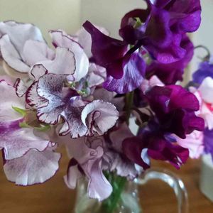 連投です🙇 今日のお花💜スイートピー💜 この色もとっても綺麗です💜