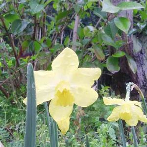 私の生け花の先生にいただいた水仙の球根。 職場のすみに植えていたものが咲きました。 やわらかい黄色が、いい感じです。 「香りが、とてもいいよ」といただいたのですが 今日の雨では、わからず。 せめて曇りの日に、かいでみようと思います?