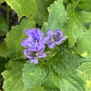 隣り街で暮らす花友さんご夫妻が 育ててみえる山野草🪴… 週末に開催された「秋の山野草展」に出典されたお花(① ~③)を見て来ました😍… 《スライドpic》 ①、②アキギリ💙💜 ③ノコンギク💜 ④アポイキキョウ💜💙 ⑤スズムシバナ💙