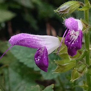 紫色のアキギリの花、キバナアキギリはよく見ますが紫色は初めて見ました、サルビアガラニチカによく似ていますね💜🌿 アキギリは日本固有種ですが、世界にもアキギリ属は900種類位有るようで、キバナアキギリだけが学名 Salvia nipponicaになっていますね。 世界に黄色いアキギリは少なかったのでしょうか? 白いアキギリの花もあるようです。 シソ科 アキギリ属