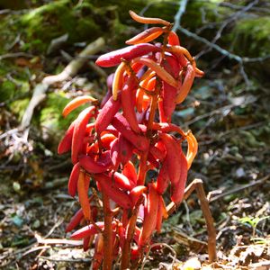 少し前の補足です ツチアケビ ラン科 山地の林内や笹藪などに生える葉緑素を持たない腐性植物。 腐性植物とは、自分で光合成を行わず、菌から養分を取る植物のこと。
