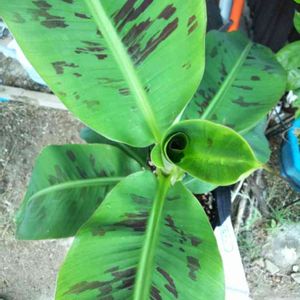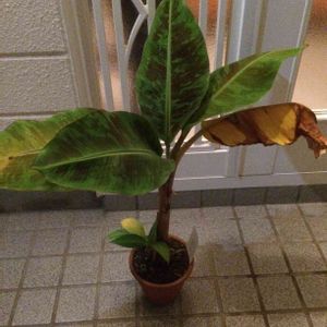買ってしまった、三尺バナナ。 完熟バナナを食するのが目標‼️ 冬場の取込みを考えて軽い不織布のポット10号に植えました。 落ち着くまではちょい日陰で養生中。