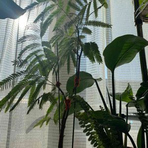 去年の11月末頃にチリチリのカサカサになって葉っぱが落ちてしまったエバーフレッシュさん。 今年1月に新芽が出てきてリスタート。 夏に少し背が伸び、葉っぱも増えて調子良さげです🤗 新芽が伸びて葉っぱの接触が気になり、まだ若いうちに枝を曲げてみようと企み中😁