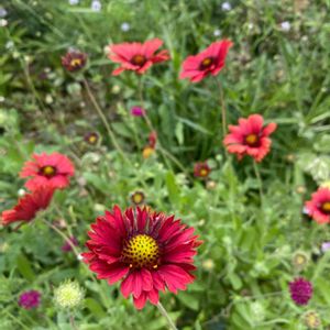 近くの畑に咲いてました ガイアルディア🌼🌺🌼🌺🌼 燃える様な赤に黄色の縁取りが綺麗 何本もの花がユラユラ とても綺麗でした🌺🌼🌺🌼