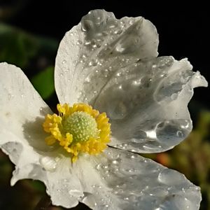 ❁🤍アネモネ シルベストリスマドンナ❁🤍 原種(❁3~4㌢程) よく見ると、 花弁がモフモフなんですね〜 蕾から、開花まで ポツリ ポツリと蕾をつけています 先日投稿(8/5)のは、こぼれ種から 今回は、鉢植えの中から 咲きだしました。