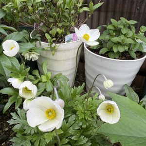 お早うございます😊☀ ❁🤍アネモネ・シルベストリス マドンナ 鉢植えの方ですが 沢山咲いてます。 春風にソヨソヨ♪🎶 何か口ずさんでる🎶♬ えぇっ~!! つがる かいきょう〜ふゆげ〜♪♪ ち、違うでしょ〜🙄😂🤣🤣🤣 ❁🤍マドンナ嬢 今は その気分なのよ❢婆ちゃん❗️ す、スンマセン😁 今日も 愉しく楽しく元気に笑顔で🥰✌️