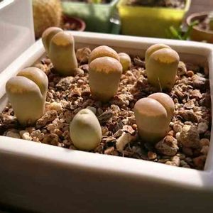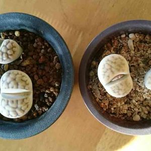リトープス 実生 2ヶ月すぎました。3つに分けました。 買った時に出来ていた種からで、色んな顔があるなー。