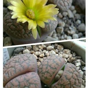 リトープス様、古株さんが咲きました。久しぶりの御目文字✨⤴ 明日の8時半のTV楽しみ🎵多肉ちゃん❤