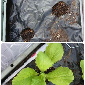 『たけのこ白菜』 9月に白菜の種蒔きは 失敗しました‼️ 時期が遅くなるので9月の半ば過ぎに苗をいくつか購入して 一部を定植しました‼️ 上の写真は 土が入っていた袋を開き ハサミで穴を開けて端をピンで 止めています‼️ 下は植え付けた苗です‼️ まだ🦋も飛んでいるので この後、網を掛けました‼️ 隙間から虫が入らないといいな✌️
