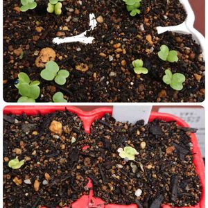 白菜の芽が出て、ちょっと成長して喜んでました🎵 今朝じっくりと見てみたら、なんと!キノコがにょきにょき🍄 虫に食べられてる葉っぱもちらほら💦 土は市販の種まき用のを使ってるのにキノコ菌が入ってるんだねf^_^;