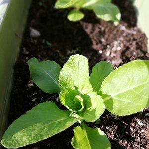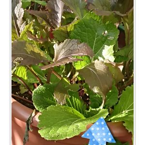 プランター栽培 【紫奏子】 紫色の白菜です‼️ 植える時期が遅かったからか巻いていません(ToT) が……… 外の葉っぱを順番にサラダで食べていますよ✌️ アントシアニンが豊富で体も喜んでいるかな⁉️