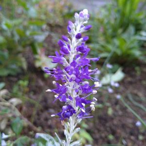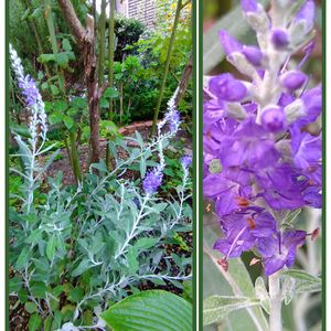 ルリトラノオの近縁種だそうで、よく似てます。 シルバーリーフと青紫の花がきれいです。 昨年もほぼ今頃に咲き出しました。