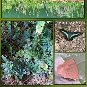 里山散策にて 2025年8月17日 雑木林の中に大きな水槽がありそこには沢山のチョウが飛び回っていました。 水槽から溢れ流れた水を吸水していたチョウを撮影しました。 ❶🌱 ヤブミョウガ 水槽の側に奇麗に並んで咲いていました。水鏡のヤブミョウガが一層奇麗です。 🌱 レインボーファン 光によって青くも見える幻想的な葉、 大好きです♡♡ 🦋アオスジアゲハ 空色のグラデーションいつ見ても素敵 (*˘︶˘*)ウットリ♡ 🦋ムラサキシジミ 初見、撮せなかったけど翅を広げたら表は紫色。思わず「奇麗‼️」 🦋キンモンガ 黒地に白い紋が目立ちます。 基本は黄色。白色は少ないそうです。 🦋コミスジ 茶褐色に3本のすじが入ったような斑紋が特徴です。 数回羽ばたいたは翅を水平に広げて一瞬停止し、また数回羽ばたき停止する変わった飛び方です。 ❷🌱 ヤブミョウガ 土手や至る所に群生していました。薄暗い所でも白い花や艶のある実が目立ち奇麗です。 1日花ですが、次から次に咲き咲き終わった順に実になるので、花、若い実、熟した実を一度に見れます。 🦋イシガケ(イシガキ)チョウ 水辺で数回見かけていますが、上手く撮影出来ません。 これは一緒にいた息子撮影です。 ❸🌱 カラスウリ これだけではなく沢山生っていました。青い実には縦縞、熟すと縞は消え朱赤になり、とても目立ちますね〜 ❹ノブドウ 駐車して下りたら目の前に沢山のノブドウが生っていました。 今まで見て来た中で一番多い実、色付く頃またここに来れたらいいな〜と思います。 ❺🌱 アジサイ 日の当たらない所に数個 🌱 ヤブラン 和名はリリオペ 馴染めない ラン科ではなくユリ科 丈夫で葉は一年中奇麗ですね。 🌱 クサギ 花もいいですけど、実がとても魅力的で楽しみです。 🌱 ミズヒキ ヤブミョウガの中に。 小さな花、撮るのが難しいですね〜 ピンボケです。(;・∀・) 🌱 イラクサ 葉や茎の刺毛に触れると痛むので要注意。「イタイイタイグサ」とも呼ばれています。 🌱 ヤマノイモ 雌雄雌異株、ムカゴはどちらにも生り、ムカゴでも種でも繁殖します。 雄花は上向きに、雌株は下向きに花が咲きます。 とても綺麗な黄緑の実 雌株ですかね?