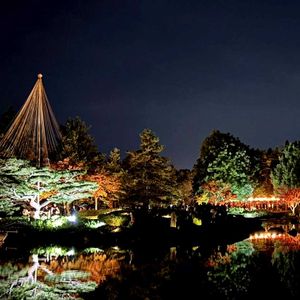 国営昭和記念公園 (東京都立川市) ✨✨✨ライトアップイベント✨✨✨ 秋の夜散歩2025🍁 私はまだ行った事がないですが、娘から送られてきた写真です 紅葉のライトアップ、日本庭園の池に写る水鏡がとても幻想的で美しい写真でした 『池泉回遊式庭園』と言って 池の周りをめぐりながら、モミジや松の雪吊り・風鈴・灯篭・和傘など、日本の和を存分にご堪能できるようです