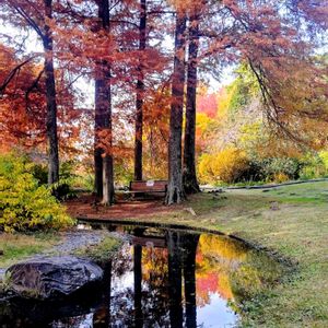 服部緑地都市緑化植物園、再訪。 この時期、ラクウショウの絨毯が見たくて行ってきました😊。 先日より、落ち葉の絨毯深くなり、サクサク踏み締めて歩きました。水鏡の池は、ラクウショウの落ち葉で半分鏡が消えてました😅。 気温もグッと下がった今日、もみじ🍁の色もより濃く見えました✨️。