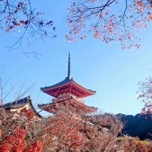 おはようございます😊 昨日訪れた、京都清水寺。朱色の三重の塔と、池に映る水鏡の世界。 最高に綺麗でした✨️。 みどりのまとめNo.105🏷️ (2025/12/6撮影)