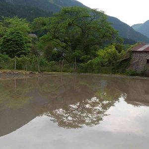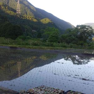 おはようございます。 今朝の風景です。田植えシーズンです。この時期のたのしみは水鏡。田んぼに映る山や空も素敵。