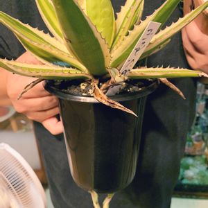 アガベ五色万代に足が生えました😆 相方の妹ちゃんが なんか下から出てますよーー と見つけてくれた😆 子株が出るとこ間違えて底から出てきてます🤣 大移動大変だったけど大笑いして疲れも癒えました❤️