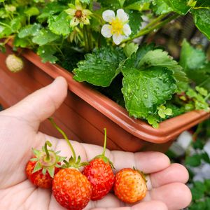 久しぶりに家に帰ってきたら… 庭がにぎやかになっちょりまして 葉っぱもワサワサ、お花も咲き乱れ イチゴも実がなりまして、留守中チビッ子達が食べてくれてたそうです。 (ФωФ)←植えるだけ植えて 後は、放置した人 帰ってきた翌朝 どれどれ、どんげだろっかね~♪︎と採って食べてみました。 ちょっと甘酸っぱく イチゴの味がしました。