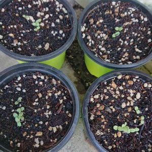 サニーレタスの種から植えた物が芽🌱を出した。1ポットハーモニカの先生に今日、車を運転して持って行ってあげた。(にじいろふぁーみんに買い物へ行ったので。) 先生に2ヶ月ぶりに逢って来た。