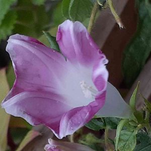 小さいけれど 星形の朝顔が咲きました 花弁の裏側の色の方が 綺麗なピンク色!