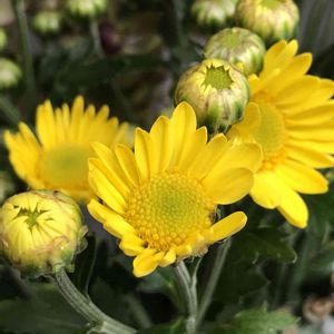 菊がもうすぐ咲きます❣️つぼみにな?まで、何色か分からなかったけど、とっても鮮やかな黄色でした👀😊嬉しいなぁ😃