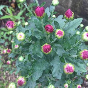この春植えた菊の花、もうじき咲きそうです。上から見たら可愛い❤️