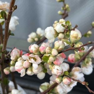 こんにちは 初夏日和 半袖の方も多いです🤗 今日のお花 ボケ 我が家のベランダで毎年咲いてくれるんです🌸✨🌟