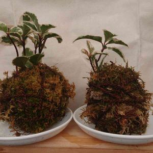 苔仲間8 斑入りヤブコウジ実がならないとききました。🤔 1株を分けて苔玉にしました。🤗🎵