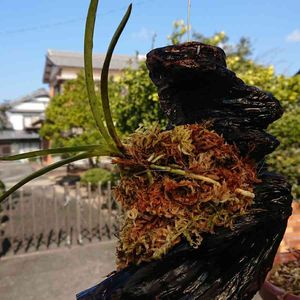流木づけ 今日の浜辺の戦利品、流木の肌にフウランをのせました。🤗🎵➰🎵