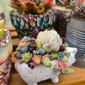 今が一番可愛い小人の花束さん♡ 私が思うキュンなポイントは…🫰 お花みたいな形*** えんじ色のかすり模様❤️❤️❤️ 間から顔出してる無数の赤ちゃん🌱🌱🌱 触るとネチネチした葉っぱ🍃🍃🍃 とにかく全部がお気に入り! 夏が休眠期💤 ギュッと閉じて赤ちゃんの✊🏻みたいになるから その前の今が見頃です(´u`)