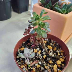 1年間大きくもならず、枯れもせずひたすらそのままの姿だった謎多肉さん。 ついに成長を始めたようです。 アエオニウムだとは思うけど、この子はいったい誰なんだろう😅 こんなに成長遅いものなのかな