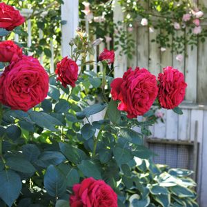 ローズデキャトルヴァン 花びらのぎゅっと詰まった赤の大輪がエレガントでゴージャス! 濃厚な香りにも癒されます♪ …ですが、枝は太くトゲも多くなかなか骨太でゴツい子でもあります…(笑)