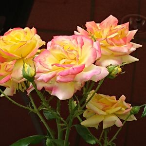 黄色💛にピンク色を帯びた大きな薔薇🌹が咲いていました 華やかで目に飛び込んできました