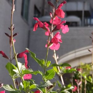 サルビア・ミクロフィラ (チェリーセージ) シソ科サルビア属 葉を揉むとサクランボ🍒のような芳香がするのでチェリーセージとも呼ばれる 花言葉 燃ゆる思い 尊重 知恵