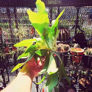 去年の11月に植えたコウモリランの苔玉。 あまり肥料をあげてないけど、ゆっくり大きくなってる感じ。