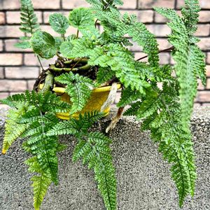 《毎月4日はシダの日》 トキワシノブ盆栽、勝手に生えたユキノシタ付き。サン=サーンス交響曲第3番オルガン付き、みたいな。