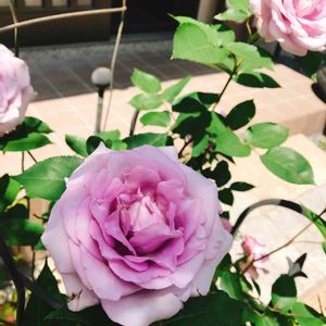 去年、古株のジュリアがとても良く咲いてくれたのに勇気をもらって、ガブリエル様に初チャレンジです が、先制パンチくらいました😅 うちではほとんど出ないうどんこ病が少しと、強風のせいかな?葉っぱの傷みが💧