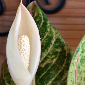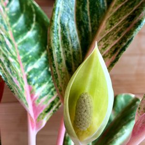 アグラオネマ ナイトスパーク💖 初めて花が咲きました😆 随分前の事、クワズイモの花が初めて咲いた時も よく似た花だったなぁ…と思ったら、同じサトイモ科‼️
