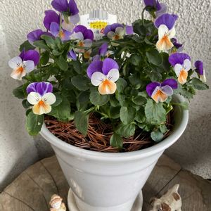 おはようございます☀ ビオラ•ピーチジャンプアップ🧡💜🤍 お迎えしました。 この色合いが好きで毎年育てています。