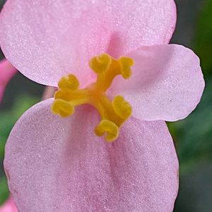 今日のお花の🩷シュウカイドウ🩷 ・中国原産の多年草でベゴニアの一種。 ・雄花は「おしべ」しか持たず、正面から見ると中央の黄色い球の部分にたくさん集まっています。4枚ある花びらのうち左右にある小さい花びらが花弁で、上下の大きな2枚は萼なのだそうです。 雌花は「めしべ」だけを有し、花の中心に3本あるそれぞれの柱頭は2つに分かれています。 ①〜⑤9月22日に植物園にて撮影🤳