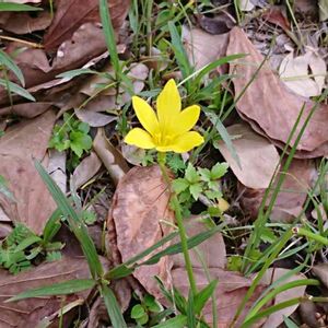 黄色い小花が可愛らしい ゼフィランサス・シトリナの姿に思わず📸 道端に野生化して咲いてます😍 その周囲の緑の細葉も同じく 野生化したヤナギバルイラソウ😊