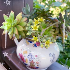 今朝の庭から➰ こちらの多肉さんにも‥ 沢山の🌼が咲いてます💞🎵