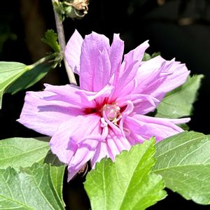 公園の隅っこに色のついた花?を見っけ❗️ ピンク色の花を咲かせたムクゲでした。薄紫色になった花後も残っていて(③)、綺麗でした❣️ フェンスの向う側には白いムクゲも咲いていて、今まで気が付かなくってチョッと損してた~💦