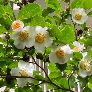 おはようございます😃 🏷️今日のお花 🌳ナツツバキ🌳 ①ナツツバキ(別名、シャラノキ) お隣さんで咲いてます☺️ ② フロックス,ペチュニア ルドベキア、マリーゴールド ③ ゼラニウム、マツバギク ウスベニアオイ、ミニひまわり🌻 ④ワスレグサ (3番花) ⑤ビオラ (溢れ種から) 昨日、雨が止んだ時に撮って来ました☺️(②〜⑤私の庭にて😊) 🏷️木に咲く花 🏷️金曜日の蕾たち 🏷️白い貴婦人✨ 参加します。