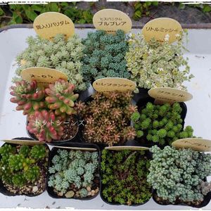 〝 いちかわふぁ〜む さんの セダムセット〟 ✰︎10個セット(2200円+税) 屋外のセダム置き場の補修工事の為、置き場がなくなる事もあり、めちゃくちゃお得価格で販売します💨(^-^) セットはAセットとBセットがあります。 こたらはBセットです。