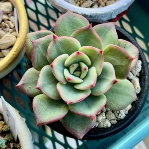 今日も雨のち曇りのお日様なしのお天気です。 ハニーミントさんから10/18に届いた苗、 アガボイデス ジゼル センセーション ジゼル、縁取りが赤くて葉が尖っているのが好きで、一番に選んだ苗。 センセーションも縁がピンクで丸こい感じが可愛い。 来週あたりから気温もぐんと下がり、天気もいいみたいだから紅葉進むといいね😊