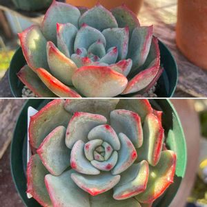 「センセーション」 エケベリア属 葉がペタリと平べったくして 春を迎えたけど、 葉が立ち上がって厚みも増してきました。