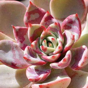 センセーションの斑が、不思議な感じに入りました😳 これが血斑っていうものでしょうか? 葉の裏はピンクでとても可愛いです☺️